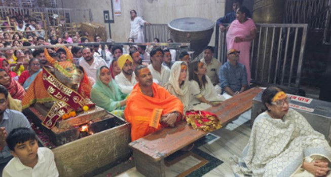 Dhawan reached the temple early in the morning, dressed in Bhagva Vastra. He joined other devotees in offering prayers and participating in the symbolic ash-based ritual (bhasma aarti) inside the temple.