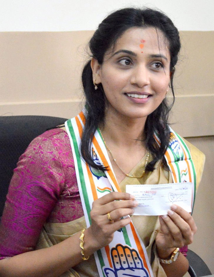 Congress candidate for Rajarajeshwari Nagar Assembly bypolls, H. Kusuma, the widow of IAS officer D.K. Ravi, filed her nominations on Wednesday and declared assets worth slightly more than Rs 1 crore and liabilities worth Rs 20.48 lakh.