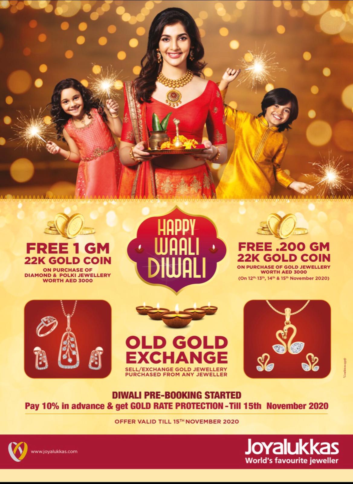 This Diwali Joyalukkas has launched a special promotion ‘Happy Waali Diwali’ which is on till the mid of November. Joyalukkas is giving free 1gm 22k gold coin on purchase of diamond and Polki jewellery worth USD 1000, free 0.200 gm 22k gold coin on purchase of gold jewellery worth USD 1,000 from 12th to 15th Nov 2020, as part of the promotion. Customers can also sell/exchange gold jewellery purchased from any jeweler.