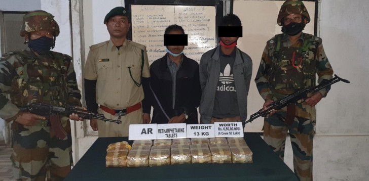 An Assam Rifles statement said that acting on a tip-off, the troopers of the central paramilitary force arrested two youths from a hut in eastern Mizoram's Champhai district and seized 1,30,000 Methamphetamine tablets worth Rs 6.50 crore from their possession late Wednesday evening.