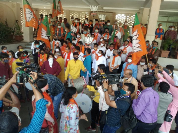 Patna, Nov 10: With the trends changing in the Bihar Assembly election results, confidence seemed to be returning to the BJP as the workers started assembling at their party office in Patna.