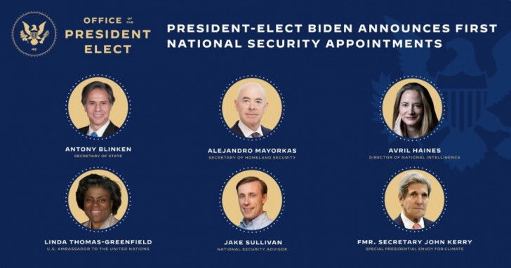 "These officials will start working immediately to rebuild our institutions, renew and reimagine American leadership to keep Americans safe at home and abroad, and address the defining challenges of our time -- from infectious disease, to terrorism, nuclear proliferation, cyber threats, and climate change," is how the Biden transition describes the coming shift.