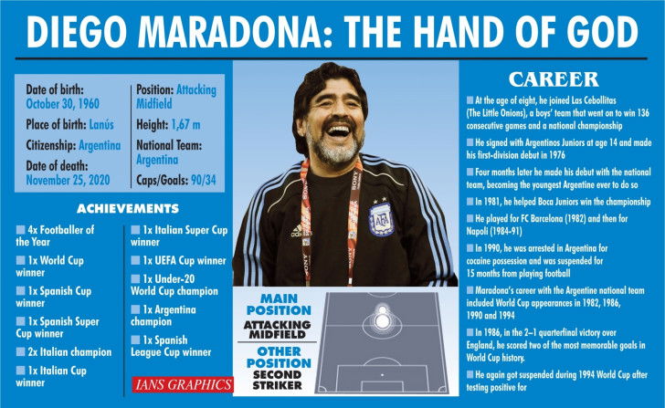 Here is a timeline of football legend Diego Armando Maradona of Argentina. A World Cup winner, he passed away on Wednesday, aged 60, in Tigre, Buenos Aires.