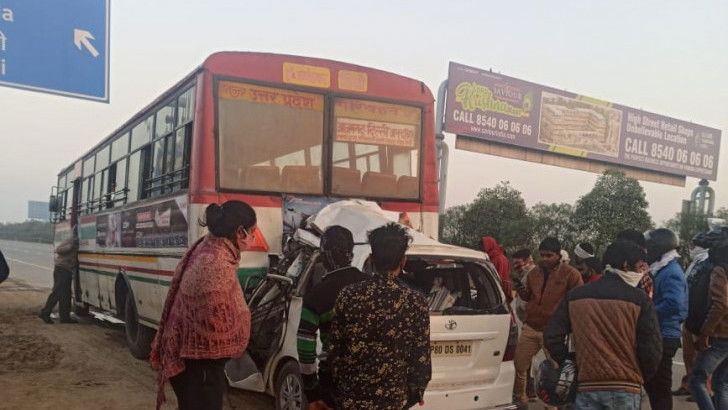 According to police the spot was nearly one-and-a-half kilometres before the zero point near the HP petrol pump along the expressway line from Agra to Greater Noida at the Beta-2 police station area. All four deaths took place on the spot while the fifth is critical.