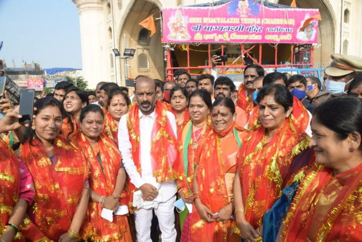 Temple committee welcomed Sanjay Kumar, MLA Raja Singh and corporators, and felicitated them. They all had "darshan" before taking the pledge.