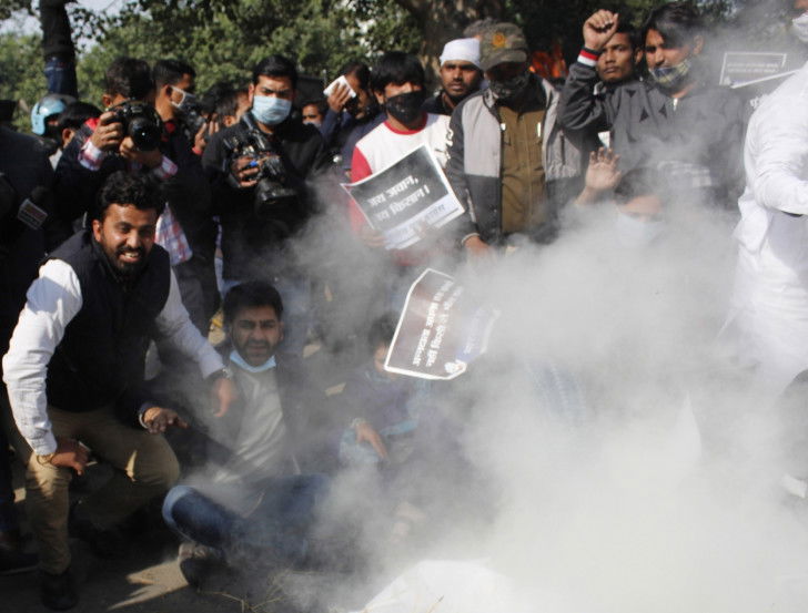 New Delhi, Dec 21 The Indian Youth Congress on Monday staged a protest outside Krishi Bhawan here demanding justice for farmers who had died while protesting against the three contentious farm laws.