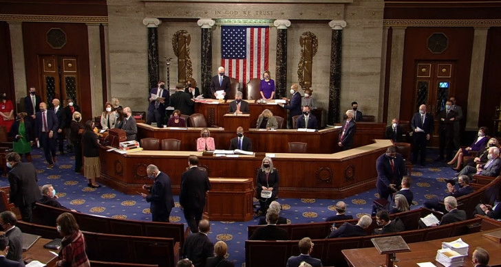 While presiding over the House floor, House Speaker Nancy Pelosi said: "We must and we will show to the country and indeed to the world — that we will not be diverted from our duty, that we will respect our responsibility to the Constitution and to the American people."