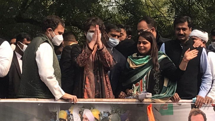 New Delhi, Jan 15: Congress General Secretary Priyanka Gandhi and former party chief Rahul Gandhi on Friday joined a protest march here to show solidarity towards the protesting farmers, and walked towards the Raj Niwas which houses the residence and office of Delhi Lt. Governor.