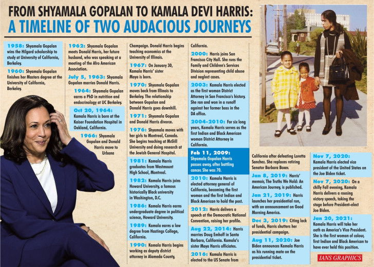 From Shyamala Gopalan to Kamala Devi Harris: A timeline of two audacious journeys