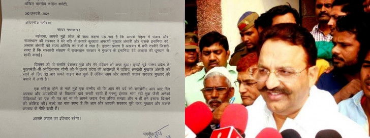 Cong treats Mukhtar as guest: BJP MLA's letter to Priyanka