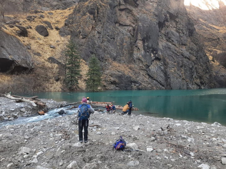 The mouth of the lake is quite dangerous to cross especially when the sun's rays start falling over this patch which leads to the melting of the glacier ice mixed in the deposition and the deposition starts getting slushy. Any person walking over it may sink in it, said the officer.