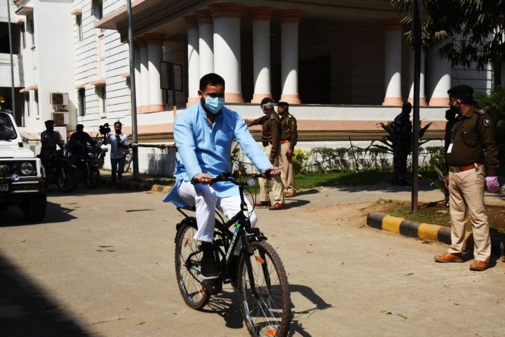 Patna, Feb 26 During the Budget session of the Bihar Assembly on Friday, Leader of Opposition Tejashwi Yadav reached the Assembly riding a bicycle to highlight the rising prices of petrol and diesel in the state.