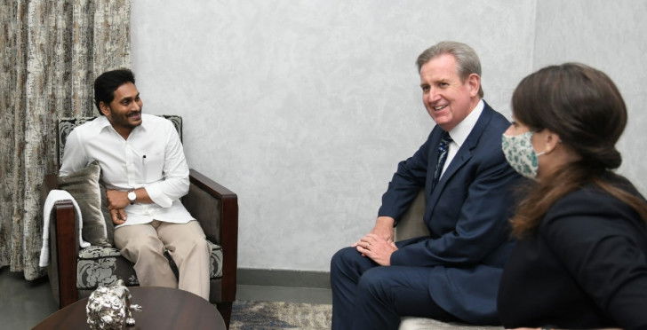 Amaravati, March 10 : Australian High Commissioner to India, Barry O' Farrell, along with the country's Consul General at Chennai, Sarah Kirlew, called on Andhra Pradesh Chief Minister Y.S. Jagan Mohan Reddy.
