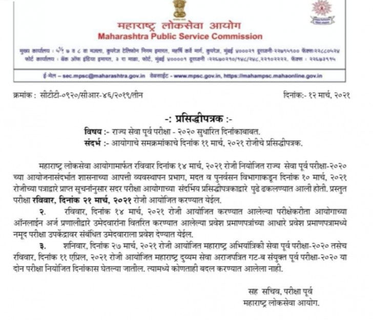 Maha public service prelims exams rescheduled for March 21