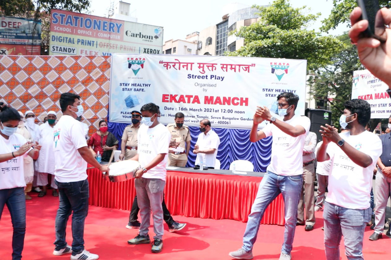 As part of this initiative, the inaugural street play “Corona Mukt Samaj†was successfully organised by “Ekata Manch†at Seven Bungalows garden, Andheri west on March 16,2021. Ajay Kaul, Additional Commissioner of Police (West region) Sandip Karnik, Senior Police Inspector Siraj Inamdar of Versova Police Station, Senior Police Inspector of D N Nagar Police Station Gaikwad, Shiv Sena Corporator Pratima Khopde, Prashant Kashid and others viewed the play and advised people to be aware of the coronavirus.