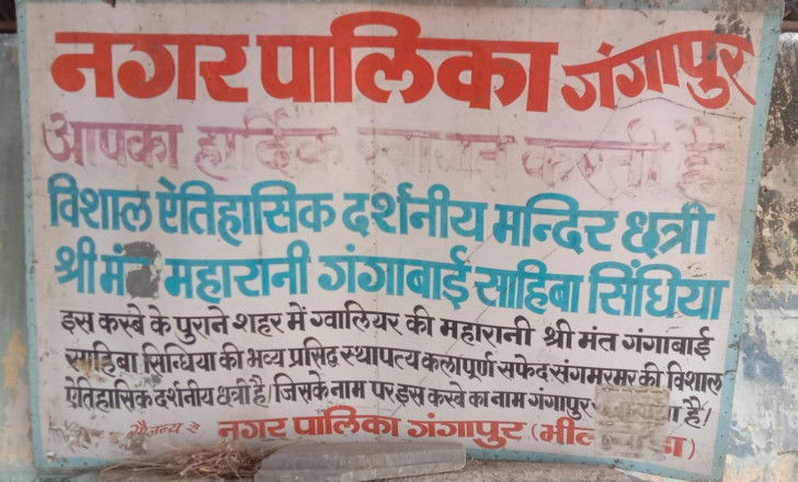 More than a dozen villages were once part of the then Gwalior kingdom. Gangabai, the daughter-in-law of the Scindia family, was the daughter of the Mewar royal family. Once, she visited Udaipur on a personal visit and while returning, died at Lalpura village which is situated near Gangapur. Hence the place was anointed as Gangapur and a temple was constructed in her name.