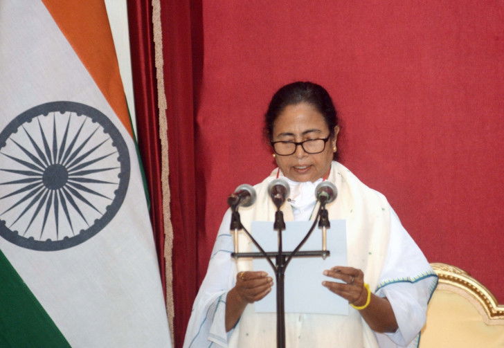While three ministers Amit Mitra, Bratya Basu and Rathin Ghosh took their oath virtually. The rest -- 40 ministers were divided into three groups -- Cabinet, MOS (Independent Charge) and MoS and they took their oath together to cut short the program.