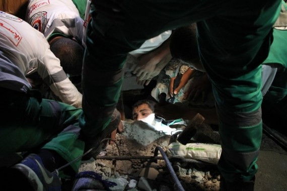In the Gaza Strip, the rescue teams found 10 Palestinians dead, who were buried under the rubble of a completed destroyed building struck on Thursday evening, according to Health Ministry spokesman Ashraf al-Qedra.