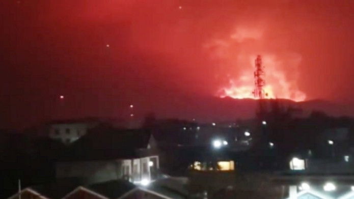 Right after the volcano eruoted at around 7 p.m. on Saturday, the night sky of Goma, with a population of nearly 2 million, was illuminated with orange flames.