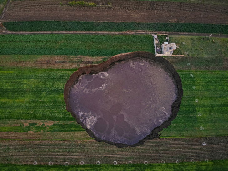 The owner of the only house in the vicinity, which stands directly on the edge of the crater, first discovered it when she heard a loud noise at the weekend.