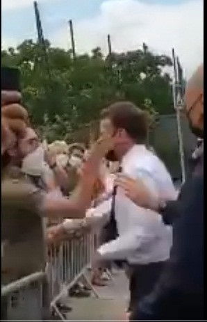 A man slapped French President Emmanuel Macron full in the face on Tuesday as the French leader was greeting people behind a fence during a visit to the Drome region in southeast France to discuss reopening of restaurants as the country eases out of lockdown measures.