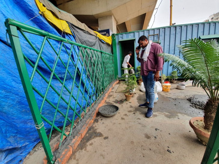 New Delhi, June 13 As the protest continues on the borders of the national capital against the three contentious farm laws passed by the Central government, the farmers, taking a note of the extreme weather conditions, and to guard themselves against the rain and storm, have set up a concrete wall around the tent.