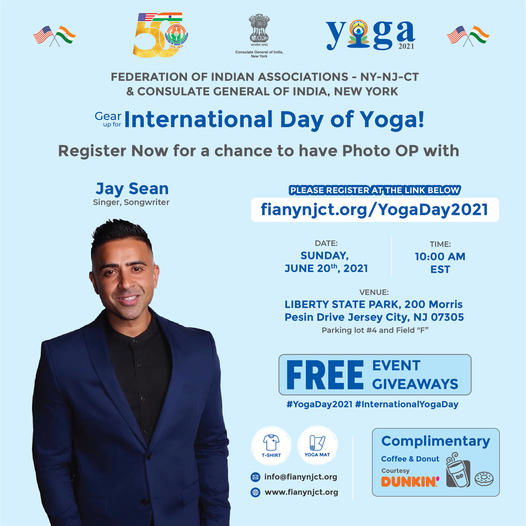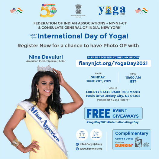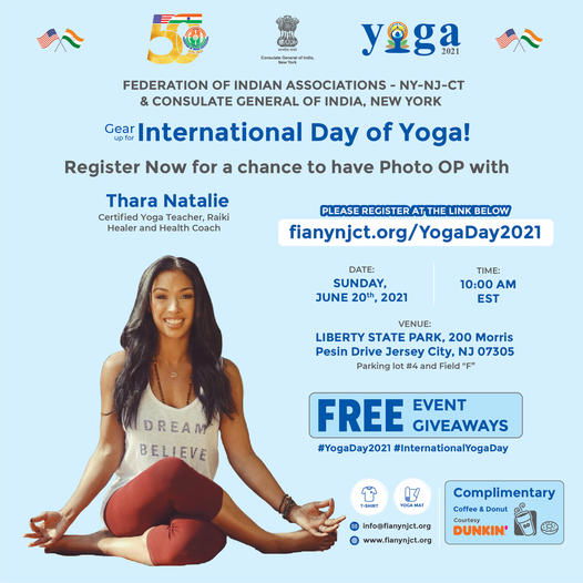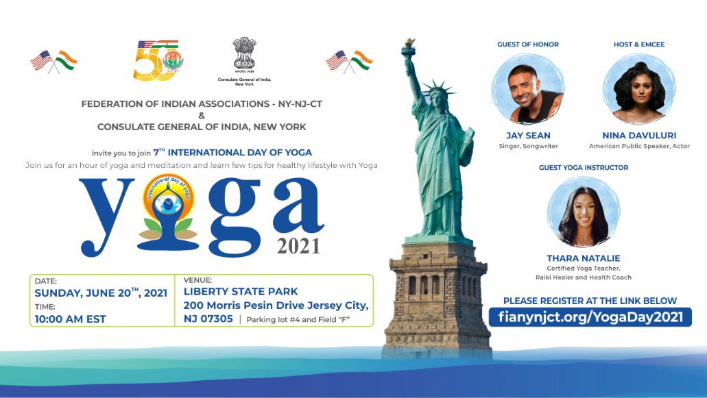 The Federation of Indian Associations of the tri-state area of New York, New Jersey and Connecticut and the Consulate General of India, New York, is organising a one-hour-long yoga and meditation program on the occasion of the Seventh International Day of Yoga on June 20, 2021 at Liberty State Park,200 Morris Pesin Drive Jersey City, New Jersey. The FIA has invited all to join the program.
