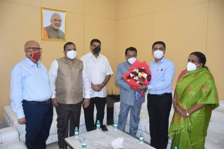 Panaji, July 14 Goa Chief Minister Pramod Sawant welcomed Governor-designate P.S. Sreedharan Pillai at the Dabolim international airport on Wednesday.