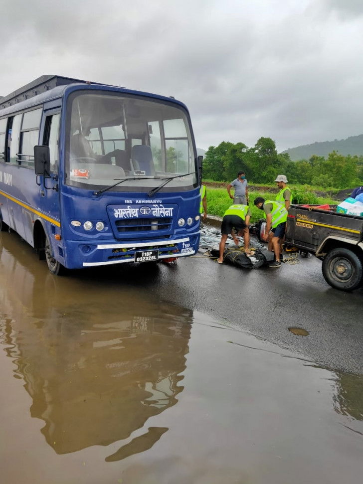 Following a request by Maharashtra Government, seven naval rescue teams reached Raigad and Ratnagiri districts by road.