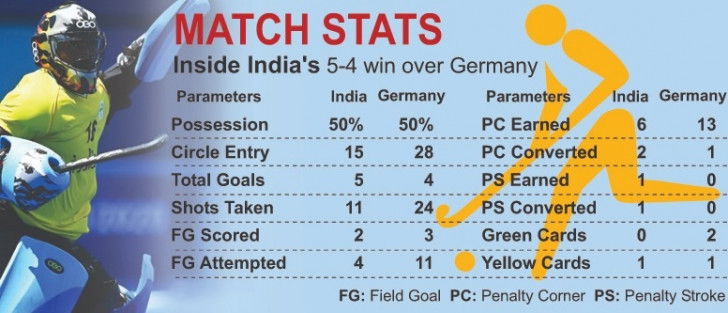 Earlier, India made a slow start and were down a goal within two minutes as Germany went ahead when Timur Oruz shot home an opportunistic field goal. Florian Fusch made a run on the left flank and sent a ball into the shooting circle for Oruz to deflect it through Sreejesh's legs to make it 1-0.
