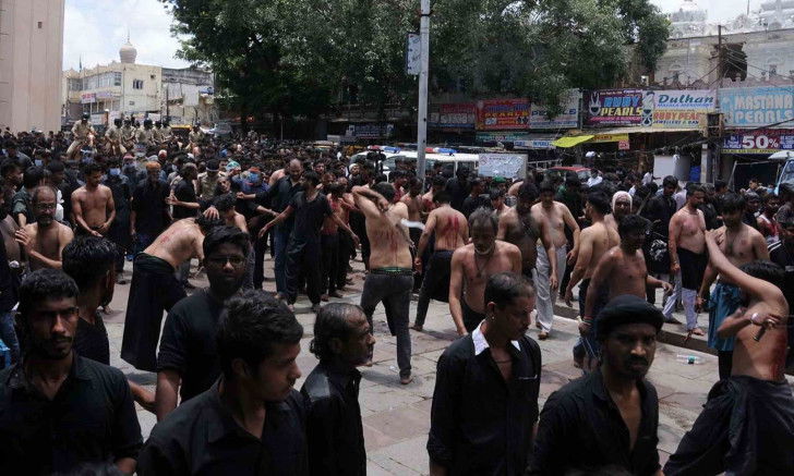 The Muslim society's two major sects Shias and Sunnis observe the tragedy of ?ussain martyrdom in battle of Karbala in a contrasting manner. Shia's take out street processions self-flagellation at various locations, while Sunnis do so to a much lesser extent, storytelling, weeping and taking out processions but do not indulge in self-flagellation.