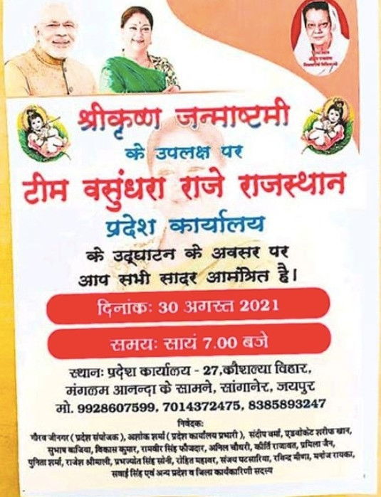 The invitation poster meanwhile carries the pictures of Prime Minister Narendra Modi and Raje's mother Vijayaraje Scindia along with Raje's picture. Surprisingly there is no lotus picture in it.