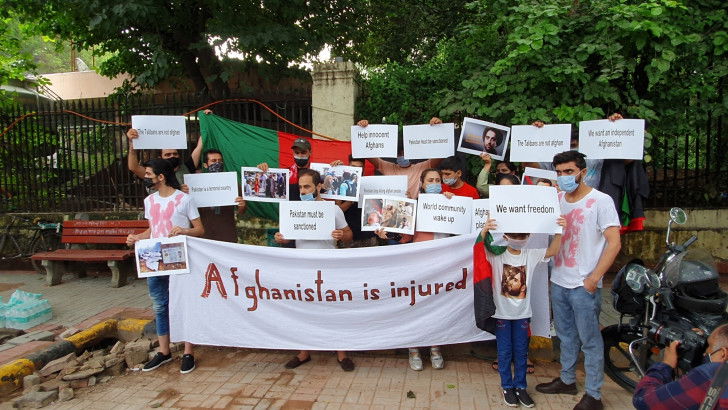 The Afghans gathered in Delhi's Chanakyapuri area and protested carrying posters and banners.