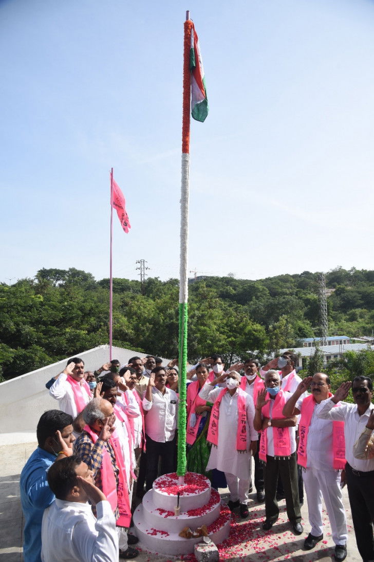 Leaders of the ruling Telangana Rashtra Samithi (TRS) and opposition parties hoisted the national flag at their party offices to mark the day.