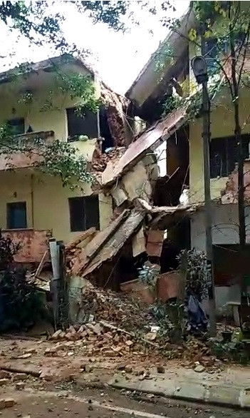 The incident was reported from KMF Quarters near Dairy Circle in the city. Luckily, the families staying in the building managed to rush outside as they saw cracks before the collapse.