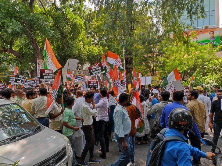 Hundreds of the Congress workers and leaders started their protest march from their party office and moved towards the BJP headquarters. They were, however, stopped by the police near the Ranjit Singh flyover.