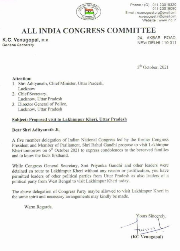 Earlier, Congress general secretary KC Venugopal had sought permission for the Rahul-led delegation.