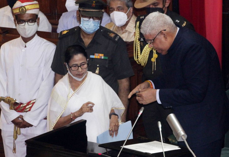 Though it is a practice that the Speaker administers the oath in the assembly and he is authorised by the Governor but in an unprecedented way Dhankhar on Tuesday said he will administer the oath to Banerjee and others, in a departure from the practice.