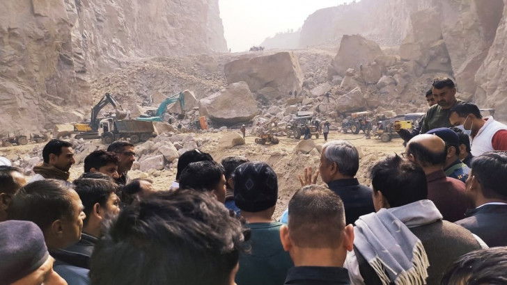 A rescue operation at the Dadam mining zone in Bhiwani's Tosham block is underway to locate the trapped people.