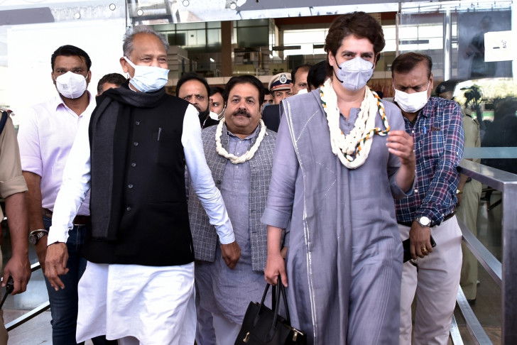 Priyanka Gandhi, accompanied with senior leader Rajeev Shukla, reached Sanganer airport on Monday afternoon. Chief Minister Ashok Gehlot, PCC Chief Govind Singh Dotasara, Gujarat in-charge Raghu Sharma also reached the airport to receive Priyanka. From here Priyanka proceeded to the Chief Minister's residence.