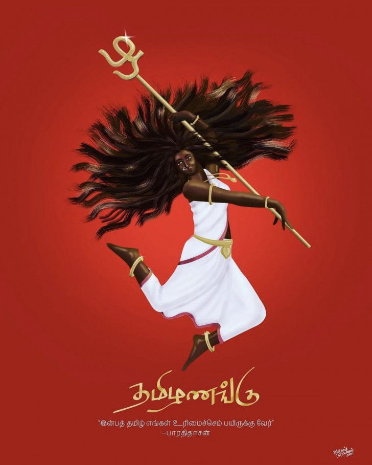 Rahman tweeted the poster of a woman holding a staff with the Tamil letter 'a' (lazha) on it. Interestingly, the letter is unique to Tamil language. The poster, titled 'Tamizhanangu', also had lines from a poem by revolutionary poet Bharathidasan. The line, "Inba Thamizh Engal Urimai Sempayirukku Vaer" (Delightful Tamil is the root of the staple crop of our rights).