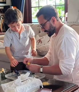 Kareena posted a video on Instagram, where Saif is seen helping Taimur make a rock band stage using a cardboard box and legos.
