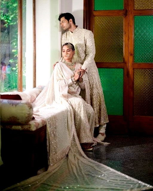 Richa and Ali look their elegant best in their couture wear designed by ace designers Abu Jani and Sandeep Khosla. The duo complimented each other with Ali looking dapper in a gold and beige sherwani and Richa looked gorgeous in an off white outfit.