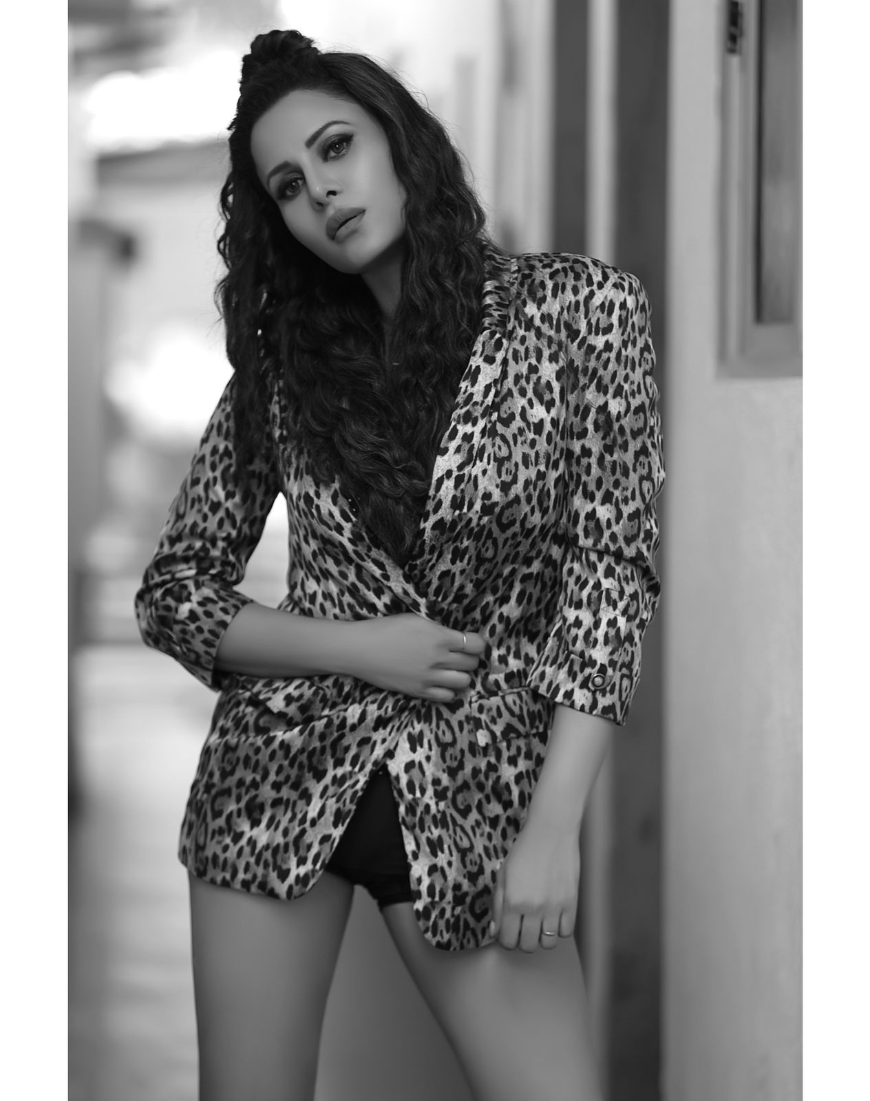Bollywood actress and fitness enthusiast Kavya Keeran set the temperature soaring with her latest picture dressed in a leopard print jacket with two pieces on social media. Her charm will surely make you go weak in the knees.