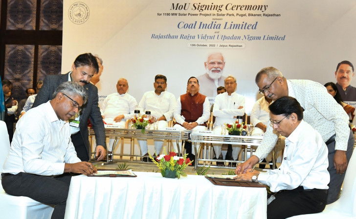 Under this MoU, Coal India will set up a solar project of 1190 MW capacity in Rajasthan, as well as an investment of Rs 5,400 crore will be made.