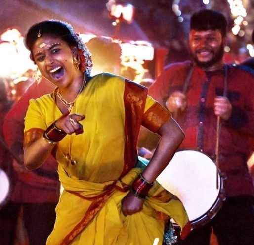 The star is seen sporting a yellow saree and can be seen shaking a leg to the fast beats of drummers.