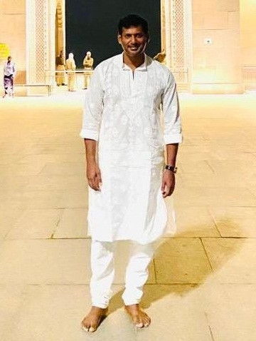 Taking to Twitter, Vishal posted pictures of himself and his family in the holy city and wrote: "Dear Modiji, I visited Kasi. Had a wonderful darshan/pooja and touched holy water of Ganga river."
