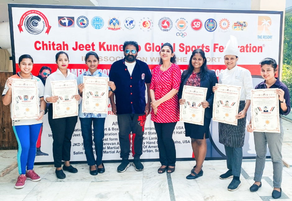 As a part of the initiative, Federation President Chitah Yajnesh Shetty trained the women workforce of the hotel in martial arts and self-defense methods. He had designed an exclusive programme for the women of The Resort. During the event, the ace martial artist also imparted knowledge on physical fitness to the participants. On the third day, all the participants of the workshop were facilitated with certificates.