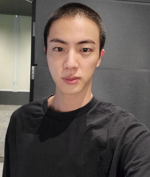 Jin took to Instagram, where he shared a photo of himself with his new haircut for military training.