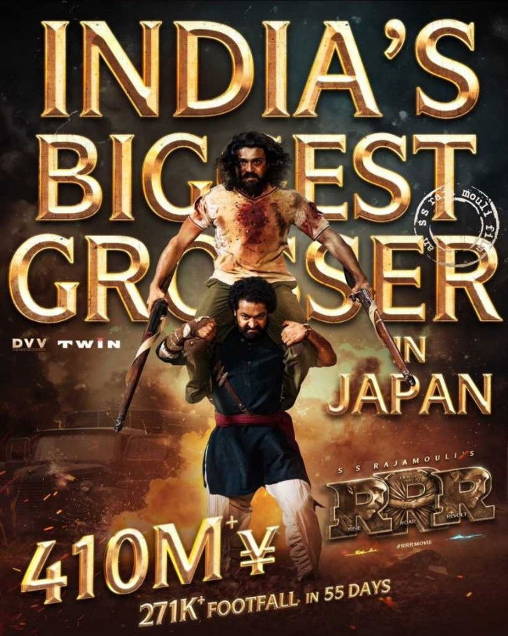 'RRR' joins 'Muthu' and 'Baahubali' (also directed by Rajamouli) as one of the top three Indian hit movies in Japan. With this achievement, Rajamouli enjoys the distinction of helming two of the three top-grossing Indian movies in Japan's box-office history.